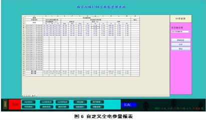 ?。?)報(bào)表功能:配電室電能管理系統(tǒng)為用戶定制了兩種功能的報(bào)表,一種如圖6所示,針對某一個主要回路,可以由用戶自行選擇時間生成該回路在該時刻常規(guī)電參量的歷史值。另一種報(bào)表由用戶經(jīng)過簡單的操作后,系統(tǒng)便會自動生成配電室所有回路以及樓層部分空調(diào)回路、租戶電表用電量的日報(bào)、月報(bào)及年報(bào)。