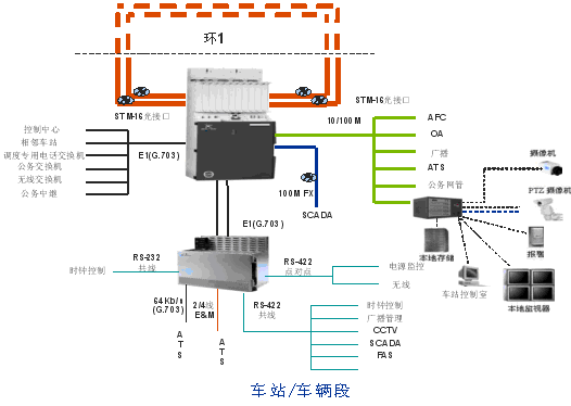 軌道交通通信系統(tǒng)是滿足軌道交通正常運營和治理而設置的信息傳遞工具,是一個相對獨立的、專用的綜合業(yè)務數(shù)字網(wǎng),主要包括通信傳輸子系統(tǒng),圖像監(jiān)控子系 統(tǒng),數(shù)據(jù)網(wǎng)絡子系統(tǒng),無線調度子系統(tǒng),電源子系統(tǒng)以及時鐘子系統(tǒng)等。其中傳輸子系統(tǒng)是整個信息系統(tǒng)的基礎和骨干,需要為其他多個子系統(tǒng)提供各種傳輸接口和 帶寬,如公務和專用電話,無線集群電話、數(shù)字視頻監(jiān)控、車站廣播、通信電源管理信號、軌道交通的通信系統(tǒng)、電力監(jiān)控系統(tǒng)、自動售票系統(tǒng)、環(huán)境監(jiān)控以及防災 系統(tǒng)等。