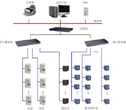 ?。?)主站層(站控管理層)位于監(jiān)控室內(nèi),具體包括:安裝有電能管理系統(tǒng)的后臺主機(jī)等相關(guān)外設(shè)。負(fù)責(zé)將通訊間隔層上傳的數(shù)據(jù)解包,進(jìn)行集中管理和分析,執(zhí)行相關(guān)操作,負(fù)責(zé)整個(gè)變配電系統(tǒng)的整體監(jiān)控。智能電力監(jiān)控系統(tǒng)提供專用的通訊功能模塊,通過專用的以太網(wǎng)硬件通訊接口,以O(shè)PC方式或其它通訊協(xié)議向上一級系統(tǒng)(如:BAS 、DCS 或調(diào)度系統(tǒng))發(fā)送相關(guān)的數(shù)據(jù)和信息,實(shí)現(xiàn)系統(tǒng)的集成。