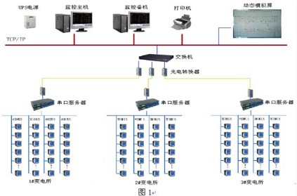 現(xiàn)場設(shè)備為采集現(xiàn)場各回路電力系統(tǒng)運(yùn)行參數(shù),包括電流、電壓、功率等遙測信息以及斷路器分合閘狀態(tài)以及故障等開關(guān)量狀態(tài);網(wǎng)絡(luò)管理層主要包括通訊管理機(jī)、光電轉(zhuǎn)換設(shè)備、交換機(jī)等,負(fù)責(zé)數(shù)據(jù)的上傳及指令的下達(dá);監(jiān)控管理層為整個(gè)系統(tǒng)的核心,所有數(shù)據(jù)的存儲(chǔ)、電力系統(tǒng)的運(yùn)行狀況的顯示、控制指令的下達(dá)均通過該部分完成。