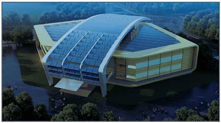屋頂設(shè)置弧形的光伏板支架,增加屋面布置光伏板的面積,光伏