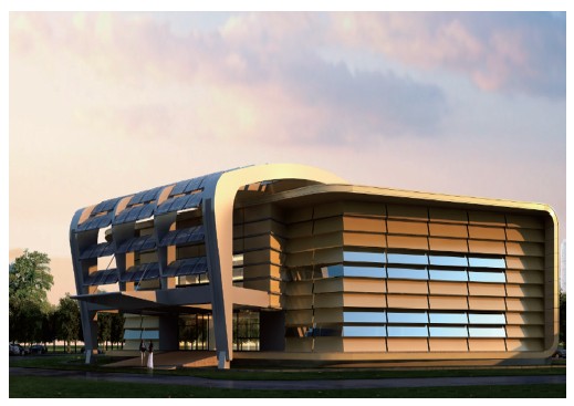 現(xiàn)代感和科技感;在建筑南向設(shè)置光伏板支架,通過計算機模擬