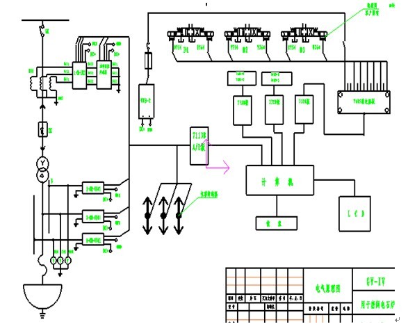 圖—2 所示,是成都高威公司研發(fā)成功的GV系統的硬件原理圖。系統采樣信號有:高壓電流互感器給出的電流信號,AC 0~5A模擬信號,經過系統配置的隔離傳感器變換為DC0~5V信號,再經A/D板進行轉換為數字信號給計算機計算;變壓器低壓側電極電壓信 號,AC0~500V,經過系統配置的隔離傳感器變換為DC0~5V信號,再經A/D板進行轉換為數字信號給計算機計算;電極夾持器位移信 號,DC0~5V,經A/D板進行轉換為數字信號給計算機計算。