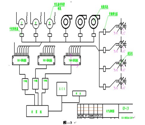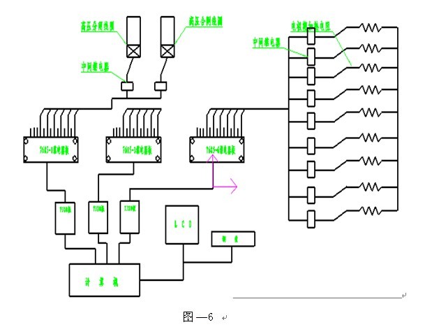 圖—5 為GV系統的液壓系統、電極風機、變壓器檔位控制硬件原理圖,圖—6 是電極糊加熱和高壓分合閘操作控制的硬件原理圖。由計算機直接控制7685繼電器板驅動,完成控制功能。操作者可以進行遠距離操作控制,便于密閉電石爐冶 煉過程的安全監(jiān)督。如果出現異常,能夠在第一時間控制相關操作,避免事故的發(fā)生。