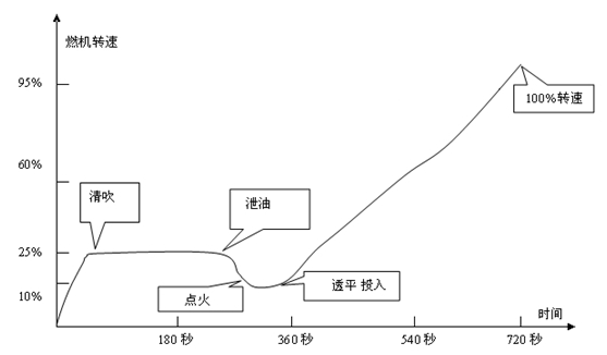 作為啟動(dòng)系統(tǒng),要求變頻器能夠連續(xù)多次啟動(dòng)(啟動(dòng)次數(shù)無限制)、加速時(shí)間可調(diào)、轉(zhuǎn)矩動(dòng)態(tài)響應(yīng)速度快。燃?xì)廨啓C(jī)啟動(dòng)曲線見下圖: