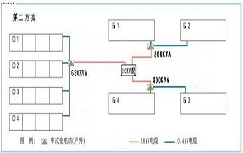 以下是一個住宅小區(qū)的供配電方案比較。第一方案是采用兩臺1000KVA的變壓器集中設(shè)置變電所,變電所距用電負(fù)荷較遠(yuǎn),外部低壓電纜出線回路多,線 路長,投資高,運(yùn)行費(fèi)用大,高低壓設(shè)備一次投資較小;第二方案是將兩臺大容量的變壓器分解為若干容量較小的變壓器,以箱式變電站的型式供電,使變配電設(shè)施 盡可能的接近負(fù)荷中心。該方案高低壓設(shè)備一次投資大,供電可靠性高,且運(yùn)行費(fèi)用低。尤其運(yùn)行時間越長,節(jié)能效果就越明顯,但該方案由于箱變接近用電負(fù)荷中 心,布置分散,管理起來不太方便,且占地多。綜合比較以上兩方案,建議在條件允許時,優(yōu)先選用第二方案。