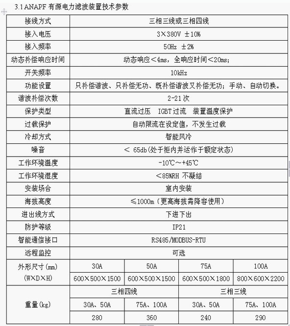 3.5 ANAPF有源電力濾波裝置價(jià)格及主要元件清單