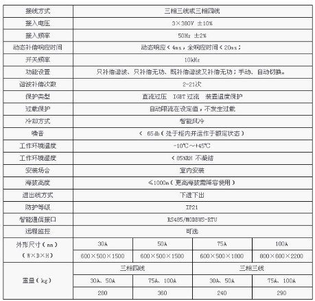 3 ANAPF有源電力濾波裝置參數(shù)