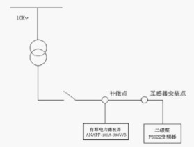 江蘇安科瑞電器制造有限公司技術(shù)人員經(jīng)過對現(xiàn)場測試結(jié)果研究后,決定采用一臺ANAPF100-400/B有源電力濾波柜進行就地補償。安裝示意圖如下: