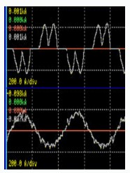 從附圖的對(duì)比中可以看出:同種負(fù)載條件下,投入使用ANAPF有源濾波器后,電能質(zhì)量改善的同時(shí),又節(jié)省了電能;功率因數(shù)的大幅度提高,提升了變壓器、發(fā)電機(jī)的供電容量,從而解決了系統(tǒng)發(fā)電機(jī)帶全負(fù)荷運(yùn)行時(shí)控制設(shè)備失調(diào)的問(wèn)題。