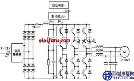 圖2.具有直流放電制動裝置的IGBT直接串聯(lián)高壓變頻器主電路