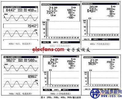 d)輸出電壓波 形在額定負載時尚好,低于25Hz以下畸變突出;