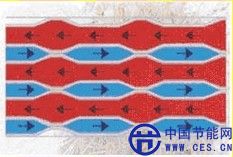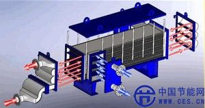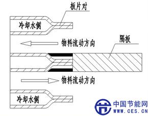 通道采用了高效平板定距柱或窩狀結(jié)構(gòu)寬通道側(cè)無觸點和其它支撐塊保證了介質(zhì)流過板片表面時很順暢無死區(qū)不容易產(chǎn)生沉積、堵塞等現(xiàn)象。同時由于相鄰?fù)ǖ纼?nèi)有很多觸點使得冷介質(zhì)介質(zhì)通過時很容易形成湍流從而得到較好的傳熱性能。兩種介質(zhì)的流動實現(xiàn)純逆流提高換熱效果。