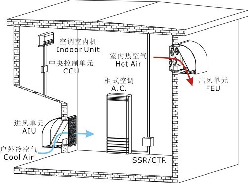 A、當(dāng)機(jī)房內(nèi)部溫度上升到需要散熱溫度(或指定溫度)時(shí),自動(dòng)打開百頁窗,利用直流風(fēng)機(jī)引入室外空氣,并排出室內(nèi)的熱空氣而形成空氣對流,達(dá)到降低室內(nèi)溫度的目的。為了保證進(jìn)風(fēng)潔凈,在進(jìn)/排風(fēng)道加裝專業(yè)的空氣過濾網(wǎng)。