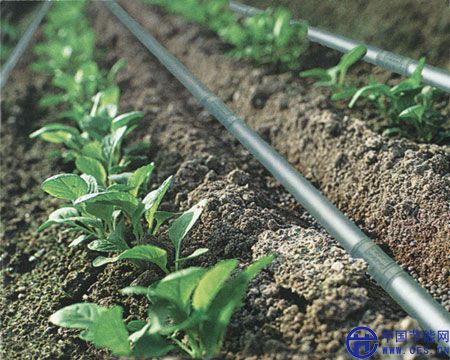 滴灌是利用塑料管道將水通過直徑約10mm毛管上的孔口或滴頭送到作物根部進行局部灌溉。它是目前干旱缺水地區(qū)最有效的一種節(jié)水灌溉方式,其水的利用率可達95%。滴灌較噴灌具有更高的節(jié)水增產(chǎn)效果,同時可以結合施肥,提高肥效一倍以上。可適用于果樹、蔬菜、經(jīng)濟作物以及溫室大棚灌溉,在干旱缺水的地方也可用于大田作物灌溉。其不足之處是滴頭易結垢和堵塞,因此應對水源進行嚴格的過濾處理。目前,國產(chǎn)設備已基本過關,有條件的地區(qū)應積極發(fā)展滴灌。