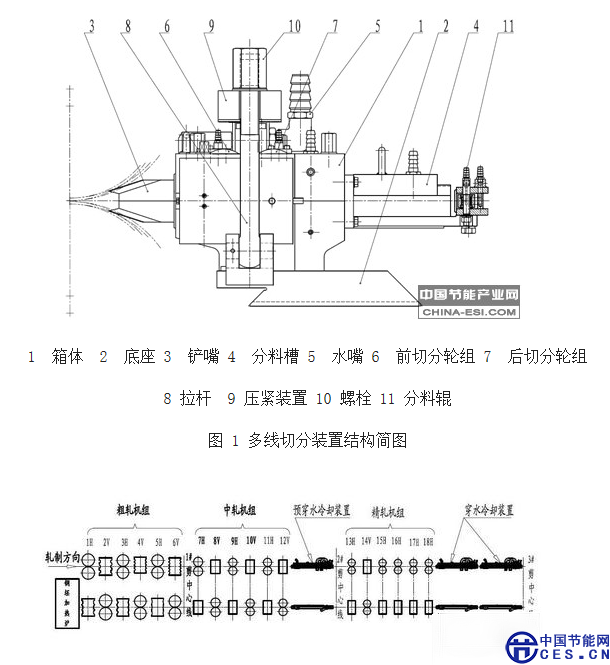 多線切分裝置和控軋空冷裝置的基本結(jié)構(gòu)見圖 1、2。