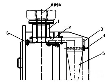 外環(huán)吹風裝置的結構:外環(huán)吹裝置結構如圖1所示。該裝置由1-吹風頭箱、2-水平風道、3-限位傳感器、4-水平風網、5-下風道、6-手動限位所組成。