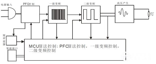 圖1 基于二級變頻控制驅(qū)動的XED燈技術(shù)原理示意圖