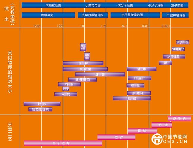 各種過濾技術(shù)分離有害物質(zhì)的范圍是由他本身的孔徑大小與有害物質(zhì)的直徑對比決定的。當(dāng)有害物質(zhì)的直徑大于過濾膜的孔徑時,就被截留過濾掉了。超濾膜分離的精度范圍,可以有效濾除泥沙、鐵銹、細(xì)菌、病毒等有害物質(zhì)。