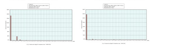 2、未治理前電壓總畸變率(THD)嚴(yán)重超出國標(biāo)5%的限值要求。經(jīng)治理, 電壓總畸變率(THD)從原來的10.2%,降止2.5%,各次諧波都符合國標(biāo)GB/T 14549-93《電能質(zhì)量 公用電網(wǎng)諧波》標(biāo)準(zhǔn)要求。