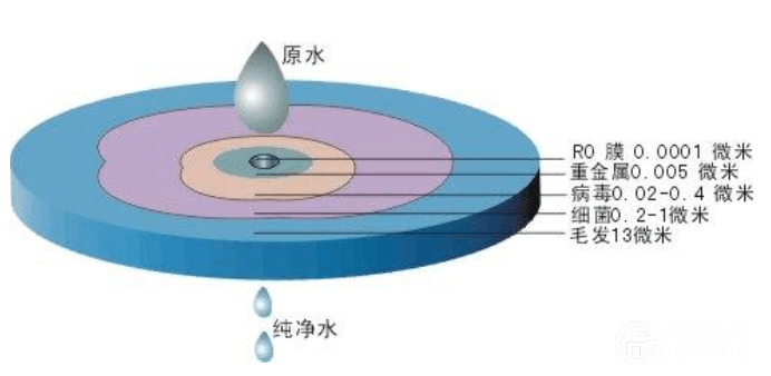 (四)反滲透(RO):過濾精度在0.0001微米左右,是美國60年代初研制的一種超高精度的利用壓差的膜法分離技術(shù)??蔀V除水中的幾乎一切的雜質(zhì)(包括有害的和有益的),只能允許水分子通過。一般用于飲用純凈水、工業(yè)超純水、醫(yī)藥超純水的制造。反滲透技術(shù)需要加壓、加電,水的利用率低。
