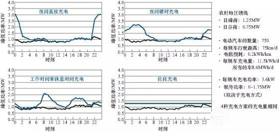 圖2不同充電方案對中亞饋線峰荷的影響示意圖