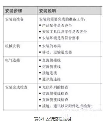 逆變器的總體安裝流程如圖3-1所示,安裝流程說明如表3-1所示: