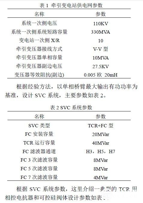 每一相SVC 補(bǔ)償系統(tǒng)均有TCR 和FC 兩部分構(gòu)成,其中FC 設(shè)計(jì)為兼具濾波功能的LC 型濾波器,在輸出容性無(wú)功功率,提高功率因數(shù)的基礎(chǔ)上可消除機(jī)車(chē)運(yùn)行所產(chǎn)生的諧波電流,提高牽引變電站供電質(zhì)量,提高牽引系統(tǒng)穩(wěn)定性和安全性。TCR 為連續(xù)可調(diào)節(jié)的電抗器,用于快速輸出感性電流,抵消機(jī)車(chē)運(yùn)行中快速變化的無(wú)功功率。