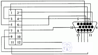 圖1中,VGA1與D型15顯示器插座接口的連接線路焊接示意如圖3所示: