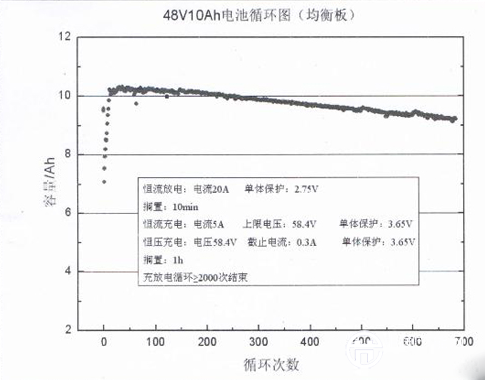 測試結(jié)果:通過并充機(jī)進(jìn)行均衡充電,4850電池組放電截止電壓下降2.216V,最大單體電池電壓差下降412mv,電池組放電容量增加6.4Ah,放電能力提高14%。