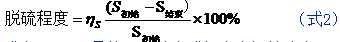 式中,S初始是處理前鐵水或鋼水中初始硫含量,S結(jié)束是處理后鐵水或鋼水中最終硫含量。