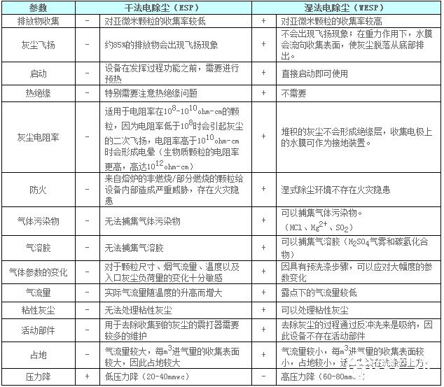 表1 ESP干法電除塵與WESP濕法電除塵技術(shù)的比較
