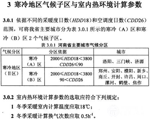 1總則 1.0.1為了貫徹落實國家節(jié)約能源、保護環(huán)境政策,實施可持續(xù)發(fā)展的戰(zhàn)略目標,落實現(xiàn)行國家標準《嚴寒和寒冷地區(qū)居住建筑節(jié)能設計標準》JGJ 26-2010,結合我省的實際情況,修訂本標準。 1.0.2本標準適用于我省寒冷地區(qū)新建、改建和擴建居住建筑的節(jié)能設計。 1.0.3寒冷地區(qū)居住建筑必須進行節(jié)能設計,在保證室內熱環(huán)境質量的前提下,建筑熱工和暖通設計應將采暖能耗控制在規(guī)定的范圍內。 1.0.4寒冷地區(qū)居住建筑的節(jié)能設計時,除應符合本標準的規(guī)定外,尚應符合國家現(xiàn)行有關標準的規(guī)定。 2術語和符號 2.1術語 2.1.1采暖度日數(shù)heating degree day based on 18℃ 一年中,當某天室外日平均溫度低于18℃時,將該日平均溫度與18℃的差值乘以1d,并將此乘積累加,得到一年的采暖度H數(shù)。 2.1.2空調度日數(shù)cooling degree day based on 26℃ 一年中,當某天室外日平均溫度高于26℃時,將該日平均溫度與26℃的差值乘以1d,并將此乘積累加,得到一年的空調度日數(shù)。 2.1.3計算采暖期天數(shù)heating period for calculation 采用滑動平均法計算出的累年日平均溫度低于或等于5℃的天數(shù)。計算采暖期天數(shù)僅供建筑節(jié)能設計計算時使用,與當?shù)胤ǘǖ牟膳鞌?shù)不一定相等。 2.1.4計算采暖期室外平均溫度mean outdoor temperature during heating period 計算采暖期室外日平均溫度的算術平均值。 2.1.5建筑體形系數(shù)shape factor 建筑物與室外大氣接觸的外表面積與其所包圍的體積的比值。外表面積中,不包括地面和不采暖樓梯間內墻及戶門的面積。 2.1.6建筑物耗熱量指標index of heat loss of building 在計算采暖期室外平均溫度條件下,為保持室內設計計算溫度,單位建筑積在單位時間內消耗的需由室內采暖設備供給的熱量。 2.1.7國護結構傳熱系數(shù)heat transfer coefficient of building envelope 在穩(wěn)態(tài)條件下,回護結構兩側空氣溫差為1K,在單位時間內通過單位面積田護結構的傳熱量。 2.1.8外墻平均傳熱系數(shù)mean heat transfer coefficient of extemal wall 考慮了墻上存在的熱橋影響后得到的外埔傳熱系數(shù)。 2.1.9固護結構傳熱系數(shù)的修正系數(shù)modification coefficient of building envelope 考慮太陽輻射對罔護結構傳熱的影響而引進的修正系數(shù)。 2.1.10窗墻面積比window to wall ratio 戶洞口面積與房間立面單元面積(即建筑層高與開間定位線圍城的面積)之比。 2.1.11遮陽系數(shù)(SCc)sun-shading coefficient 實際透過窗玻璃的太陽輻射得熱,與透過3mm厚透明玻璃的太陽輻射得熱的比值。 2.1.12綜合遮陽系數(shù)(SCc)integrated sun-shading coefficient 考慮窗本身和窗口的建筑外遮陽裝置綜合遮陽效果的系數(shù),其值為窗本身遮陽系數(shù)(SCc)與窗口的建筑外遮陽系數(shù)(SD)的乘積。 2.1.13窗框面積比Window frame ratio 玻璃窗由窗框和玻璃構成,窗框面積在整窗面積中占的百分。 2.1.14鍋爐行效率efficiency of boiler 采暖期內鍋爐實際運行工況下的效率。 2.1.15室外管網(wǎng)熱輸送效率efficiency of network 管網(wǎng)輸出總熱量與輸入管網(wǎng)的總熱量的比值。 2.1.16耗電輸熱比ratio of electricity consumption to transferied heat quantity 在采暖室內外計算溫度下,全日理論水泵輸送耗電量與全日系統(tǒng)供熱量比值。 2.2符號