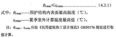 4.2.4居住建筑不宜設置凸窗,北向的臥室、起居室不得設置凸窗。當設置凸窗時,凸窗凸出(從外墻面至凸窗外表面)不宜大于400mm;凸窗的傳熱系數(shù)限值應比普通窗降低15%,且其不透明的頂部、底部、側面的傳熱系數(shù)應小于或等于外墻的傳熱系數(shù)。當計算窗墻面積比時,凸窗的窗面積和凸窗所占的墻面積應按窗洞口面積計算。 4.2.5窗及陸開式陽臺門應具有良好的密閉性能。1-6層的外窗及敞開式陽臺門的氣密性等級不應低于國家標準《建筑外門窗氣密、水密、抗鳳壓性能分級及檢測方法》GB/T 7106-2008中規(guī)定的4級,7層及7層以上不應低于級。 4.2.6墻與屋面的熱橋部位均應進行保溫處理,并應保證熱橋部位的內表面溫度不低于室內空氣設計溫、濕度條件下的露點溫度,減小附加熱損失。 4.2.7封閉式陽臺的保溫應符合下列規(guī)定: 1陽臺和直接連通的房間之間應設置隔墻和門、窗。 2當陽臺和直接連通的房間之間不設置隔墻和門、窗時,應將陽臺作為所連通房間的一部分。陽臺與室外空氣接觸的墻板、頂板、地板的傳熱系數(shù)必須符合本標準第4.2.2條的規(guī)定,陽臺的窗墻面積比必須符合本標準第4.1.4條的規(guī)定。 3當陽臺和直接連通的房間之間設置隔墻和門、窗,且所設隔墻、門、窗的傳熱系數(shù)不大于本標準第4.2.2條表中所列限值,窗墻面積比不超過本標準表4.1.4的限值時,可不對陽臺外表面作特殊熱工要求。 4當陽臺和直接連通的房間之間設置隔墻和門、窗,且所設隔墻、門、窗的傳熱系數(shù)大于本標準第4.2.2表中所列限值時,陽臺與室外空氣接觸的墻板、頂板、地板的傳熱系數(shù)不應大于本標準第4.2.2條表中所列外墻限值的120%,陽臺窗的傳熱系數(shù)不應大于3.1W/(m2·K),陽臺和直接連通房間隔墻的窗墻面積比不應超過本標準表4.1.4的限值。當陽臺的面寬小于直接連通房間的開間寬度時,可按房間的開間計算隔墻的窗墻面積比。 4.2.8外墻設計宜減少混凝土、金屬等挑出構件及附墻部件。 4.2.9外墻宜采用外墻外保溫體系或自保溫體系。外墻保溫參考做法及熱工計算參數(shù)可參見附錄G。 4.2.10屋面保溫材料宜采用成品塊(板)狀材料。屋面保溫參考做法及熱工計算參數(shù)可參見附錄H。 4.2.11外窗(門)保溫構造應符合下列要求: 1外窗(門)框與墻體之間的縫隙,應采用高效保溫材料填墻,不得采用普通水泥砂漿補縫。2外窗(門)洞口室外部分的側面應做保溫處理。 4.2.12變形縫應采取保溫措施,并由保證變形縫兩側墻的內表面溫度在室內空氣設計溫、濕度條件下不低于露點溫度。 4.2.13采暖地下室外墻應采取保溫措施。 4.3圍護結構遮陽和隔熱設計 4.3.1在房間自然通風情況下,建筑物的屋面和東、西外墻的內表面最高溫度,應滿足下式要求
