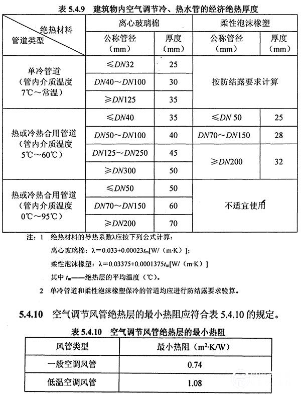 5.3.7對室內具有足夠的無家具覆蓋的地面可供布置加熱管的居住建筑,宜采用低溫地面輻射供暖方式進行采暖。低溫地面輻射供暖系統(tǒng)戶(樓)內的供水溫度不應超過60℃,供回水溫差宜等于或小于10℃;系統(tǒng)的工作壓力不應大于0.8MPa。 5.3.8采用低溫地面輻射供暖的集中供熱小區(qū),鍋爐或換熱站不宜直接提供溫度低于60℃的熱媒。當外網(wǎng)提供的熱媒溫度高于60℃時,宜在熱力入口處設置混水站或組裝式熱交換機組。 5.3.9當設計低溫地面輻射供暖系統(tǒng)時,宜按主要房間劃分供暖環(huán)路,并應配置室溫自動調控裝置。在每戶分水器的進水管上,應設置水過濾器,并應按戶設置熱量分攤裝置。 5.3.10施工圖設計時,應嚴格進行室內供暖管道的水力平衡計算,確保各并聯(lián)環(huán)路問(不包括公共段)的壓力損失差額不大于15%;在水力平衡計算時,要計算水冷卻產(chǎn)生的附加壓力,其值可取設計供、回水溫度條件下附加壓力值的2/3。 5.3.11在寒冷地區(qū),當冬季設計狀態(tài)下的采暖空調設備能效比(COP)小于1.8時,不宜采用空氣源熱裝機組供熱;當有集中熱源或氣源時,不宜采用空氣源熱泵。 5.4通風和空氣調節(jié)系統(tǒng) 5.4.1通風和空氣調節(jié)系統(tǒng)設計應結合建筑設計,首先確定全年各季節(jié)的自然通風措施,并應作好室內氣流組織,提高自然通風效率,減少機械通風和空調的使用時間。當在大部分時間內自然通風不能滿足降溫要求時,宜設置機械通風或空氣調節(jié)系統(tǒng),設置的機械通風或空氣調節(jié)系統(tǒng)不應妨礙建筑的自然通風。 5.4.2采用分散式房間空調器進行空調和(或)采暖時,宜選擇符合國家標準《房間空氣調節(jié)器能效限定值及能效等級》GB 12021.3和《轉速可控型房間空氣調節(jié)器能效限定值及能源效率等級》GB 21455中規(guī)定的節(jié)能型產(chǎn)品(即能效等級2級)。 5.4.3當采用電機驅動壓縮機的蒸氣壓縮循環(huán)冷水(熱泵)機組或采用各義制冷量大于7100W的電機驅動壓縮機單元式空氣調節(jié)機作為住宅小區(qū)或整棟樓的冷熱源機組時,所選用機組的能效比(性能系數(shù))不應低于現(xiàn)行國家標準《公共建筑節(jié)能設計標準》GB 50189中的規(guī)定值;當設計采用多聯(lián)式空調(熱泵)機組作為戶式集中空調(采暖)機組時,所選用機組的制冷綜合性能系數(shù)不應低于國家標準《多聯(lián)式空調(熱泵)機組能效限定值及能源效率等級》GB 21454-2008中規(guī)定的第3級。 5.4.4安裝分體式空氣調節(jié)器(含風管機、多聯(lián)機)時,室外機的安裝位置必須符合下列規(guī)定: 1應能通暢地向室外排放空氣和自室外吸入空氣。 2在排出空氣與吸入空氣之間不應發(fā)生明顯的氣流短路。 3可方便地對室外機的換熱器進行清掃。 4對周圍環(huán)境不得造成熱污染和噪聲污染。 5.4.5設有集中新風供應的居住建筑,當新風系統(tǒng)的送風量大于或等于3000m3/h時,應設置排風熱回收裝置。無集中新風供應的居住建筑,宜分戶(或分室)設置帶熱回收功能的雙向換氣裝置。 5.4.6當采用風機盤管機組時,應自己置風速開關,宜配置自動調節(jié)和控制冷、熱量的溫控器。對末端變水量系統(tǒng)中的風機盤管,應采用電動溫控閥和三檔風速結合的控制方式。 5.4.7當采用全空氣直接膨脹風管式空調機時,宜按房間設計配置風量調控裝置。 5.4.8當選擇土壤源熱泵系統(tǒng)、淺層地下水源熱泵系統(tǒng)、地表水源熱泵系統(tǒng)、污水水源熱泵系統(tǒng)作為居住區(qū)或戶用空調(熱泵)機組的冷熱源時,嚴禁破壞、污染地下資源。 5.4.9空氣調節(jié)系統(tǒng)的冷熱水管的絕熱厚度,應按現(xiàn)行國家標準《設備及管道絕熱設計導則》GB/T 8175中的經(jīng)濟厚度和防止表面凝露的保冷層厚度的方法計算。建筑物內空氣調節(jié)系統(tǒng)冷熱水管的經(jīng)濟絕熱厚度可按表5.4.9的規(guī)定選用。