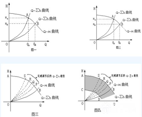 一些泵(風機)經(jīng)常不在設(shè)計工況下運行,為滿足新工況要求,同時保證電機不過載,只能靠關(guān)小泵出口閥門來調(diào)節(jié)泵的運行。水泵經(jīng)關(guān)閥調(diào)節(jié)后,在小流量、高揚程(與原工況相對比)的工況下運行,泵管壓差增大,單耗增高。如下圖一所示。假設(shè)水泵原來在工況點B 運行時,出口閥門處于全開狀態(tài),出水流量為QB,揚程為HB,如果想減少注水量,下降為QA,水泵在沒有安裝任何調(diào)整裝置的情況下,只能通過關(guān)閥調(diào)節(jié)使出水量保持在QA,那么就有QA*(HA-HB )的功損失在出口閥門上,這樣,不僅浪費了大量電能,而且出口閥門長期在水流沖擊作用下故障增多,壽命縮短。