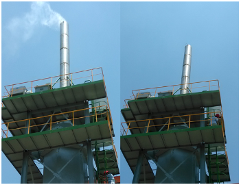 圖 5國電北侖電廠#7機組WESP投運前、后煙囪排放對比圖