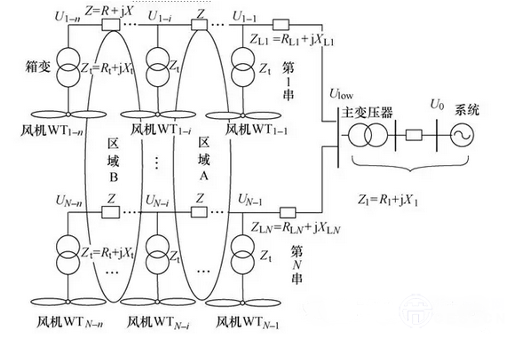 圖1風(fēng)電場(chǎng)集電系統(tǒng)典型接線