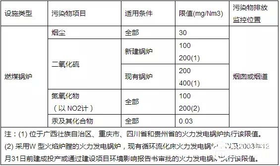 表1火力發(fā)電鍋爐大氣污染物排放濃度限值(GB13223-2011)