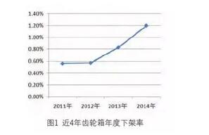 經(jīng)粗略估算,從2011年開始,齒輪箱年度下架率在逐年上升,如圖1所示。