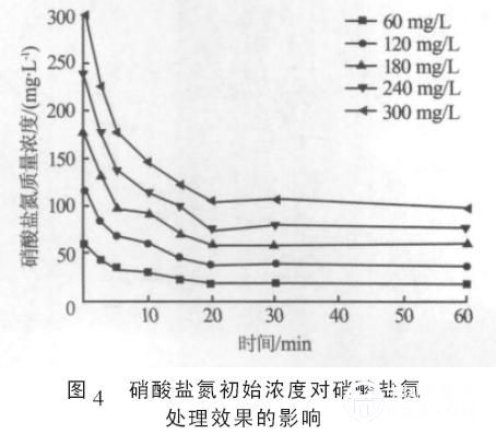 2.4 硝酸鹽氮初始濃度對(duì)處理效果的影響