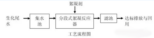 工藝流程為:在過濾前不設(shè)沉淀工序,生化尾水首先進入分段式絮凝反應(yīng)器,短時間內(nèi)膠體脫穩(wěn)形成微小絮體;然后立即進入濾池,絮凝反應(yīng)與過濾可在濾池內(nèi)同步進行;經(jīng)過微絮凝-接觸過濾后去除CODCr、TP與SS,實現(xiàn)廢水回用的目的。