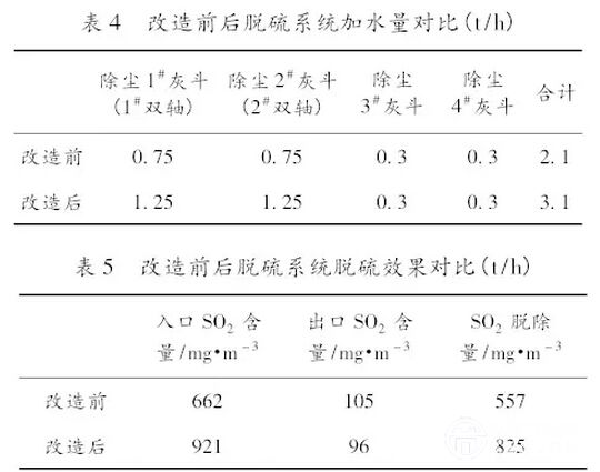 1)通過對脫硫塔底灰斗改造,解決了原灰斗積灰、結(jié)塊的問題,使脫硫塔底所有的脫硫劑均參與脫硫系統(tǒng)的循環(huán),提高了脫硫劑的循環(huán)量,同時為提高脫硫劑的加水量提供了條件,有利于系統(tǒng)脫硫效率的提高。