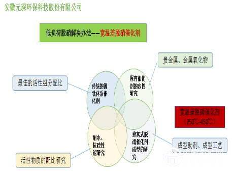鑒于運(yùn)行電廠的改造工程需結(jié)合本次低負(fù)荷運(yùn)行情況、現(xiàn)場空間布置及設(shè)計(jì)參數(shù)等綜合判斷才可以選取合適的方案,改造成本高昂,周期較長。針對中國燃煤電廠煙氣的實(shí)際條件,安徽元琛環(huán)??萍脊煞萦邢薰?元琛科技)研究出高效的低負(fù)荷脫硝解決辦法——具有寬活性溫度的煙氣脫硝催化劑。通過在傳統(tǒng)的釩鈦體系催化劑基礎(chǔ)上設(shè)計(jì)出最佳的活性組分配比,添加稀有金屬氧化物制成了獨(dú)有的寬溫差的中低溫(250~450℃)蜂窩型SCR脫硝催化劑,該催化劑能夠有效解決燃煤電廠負(fù)荷波動大、煙氣變化大的情況。