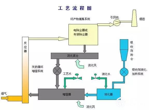 半干法工藝是利用含有石灰(氧化鈣)的干燥劑或干燥的消石灰(氫氧化鈣)吸收二氧化硫的,這兩種吸收劑都可使用,也可以使用含適當(dāng)堿性的飛灰。