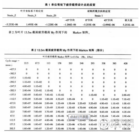 使用有限元軟件MSC.Patran計算出在單位彎矩My作用下,疲勞載荷設(shè)計點(diǎn)的應(yīng)變值研(纖維方向),見表l。