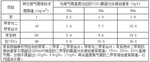北京市地方標(biāo)準(zhǔn)DB11/501-2007《大氣污染物綜合排放標(biāo)準(zhǔn)》相關(guān)排放限值見(jiàn)下表:典型VOCs污染源排放要求