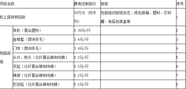 (一)項目名稱:中國南方航空股份有限公司客艙部機(jī)上廢棄物回收項目;