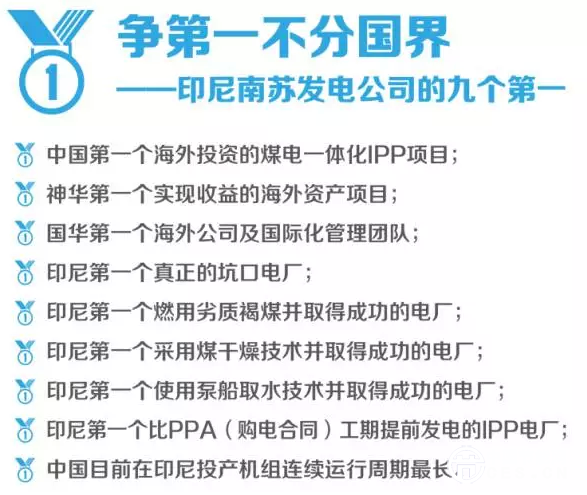 2008年3月11日,神華第一個海外項目“神華國華印尼南蘇穆印煤電項目2×150MW發(fā)電工程”落地(南蘇一期)。2015年1月,在南蘇一期的基礎上,南蘇二期擴建2×350 MW項目。印尼南蘇煤電項目是神華集團在海外投資的第一個煤電一體化IPP(獨立發(fā)電商)項目,是目前印尼中南蘇電網(wǎng)單機和總裝機容量最大的電廠。通過七年的努力,他們?nèi)〉昧瞬环驳某煽儯?/p>