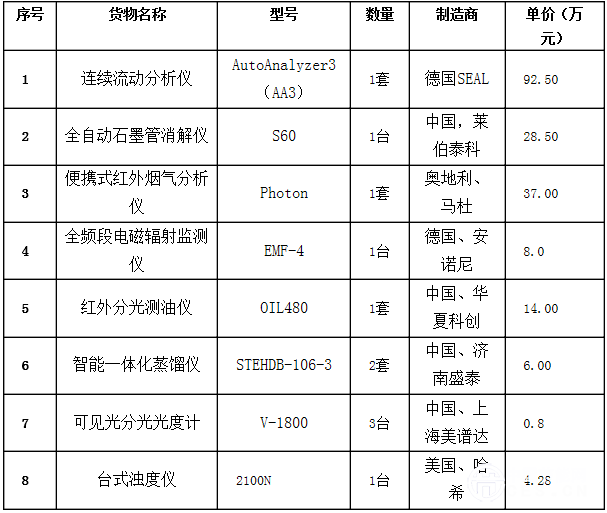 采購項目名稱:玉溪市環(huán)境監(jiān)測站監(jiān)測設備采購項目(二次)